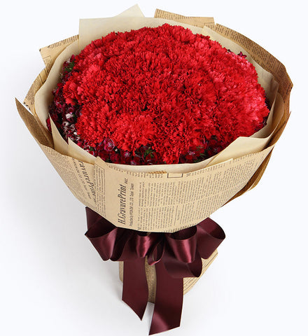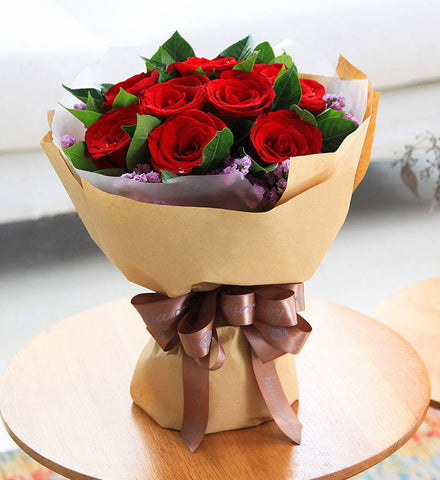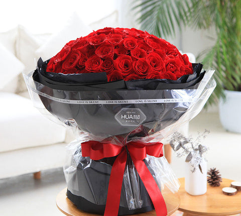 A person with love, every day is a festival. A sentence of warmth, a line of mutual hustle; a piece of advice, a piece of paper passed on; a thought, a heart looking forward to; a love, a lifetime of love. - Materials: 11 red roses, pink (or light purple) forget-me-not 0.3 tie, 8 gardenia leaves